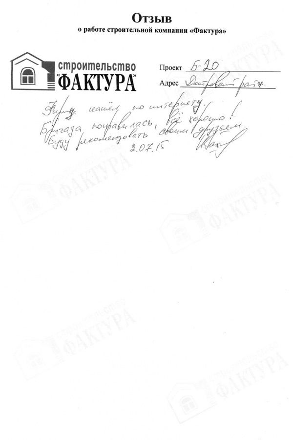 Проект: «Б- 20» Адрес: Московская обл., Дмитровский р-н.