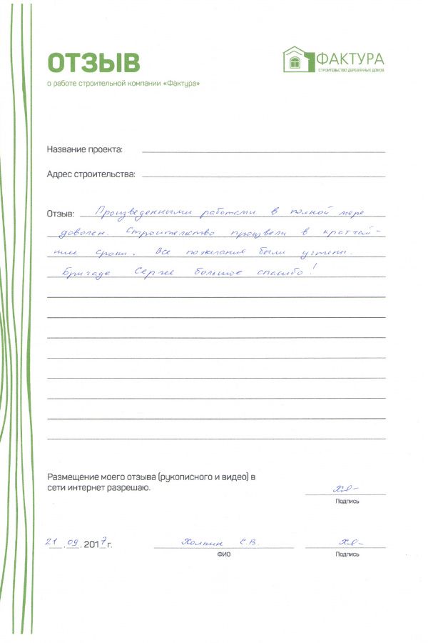Произведенными работами в полной мере доволен. Строительство произвели в кратчайшие сроки. Все пожелания были учтены. Бригаде Сергея большое спасибо.