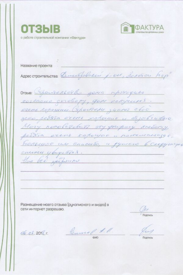 Дом получился очень хороший. Строители знают своё дело, ребята очень хорошие и понимающие. Могу посоветовать эту фирму любому. Большое спасибо, нас всё устроило.