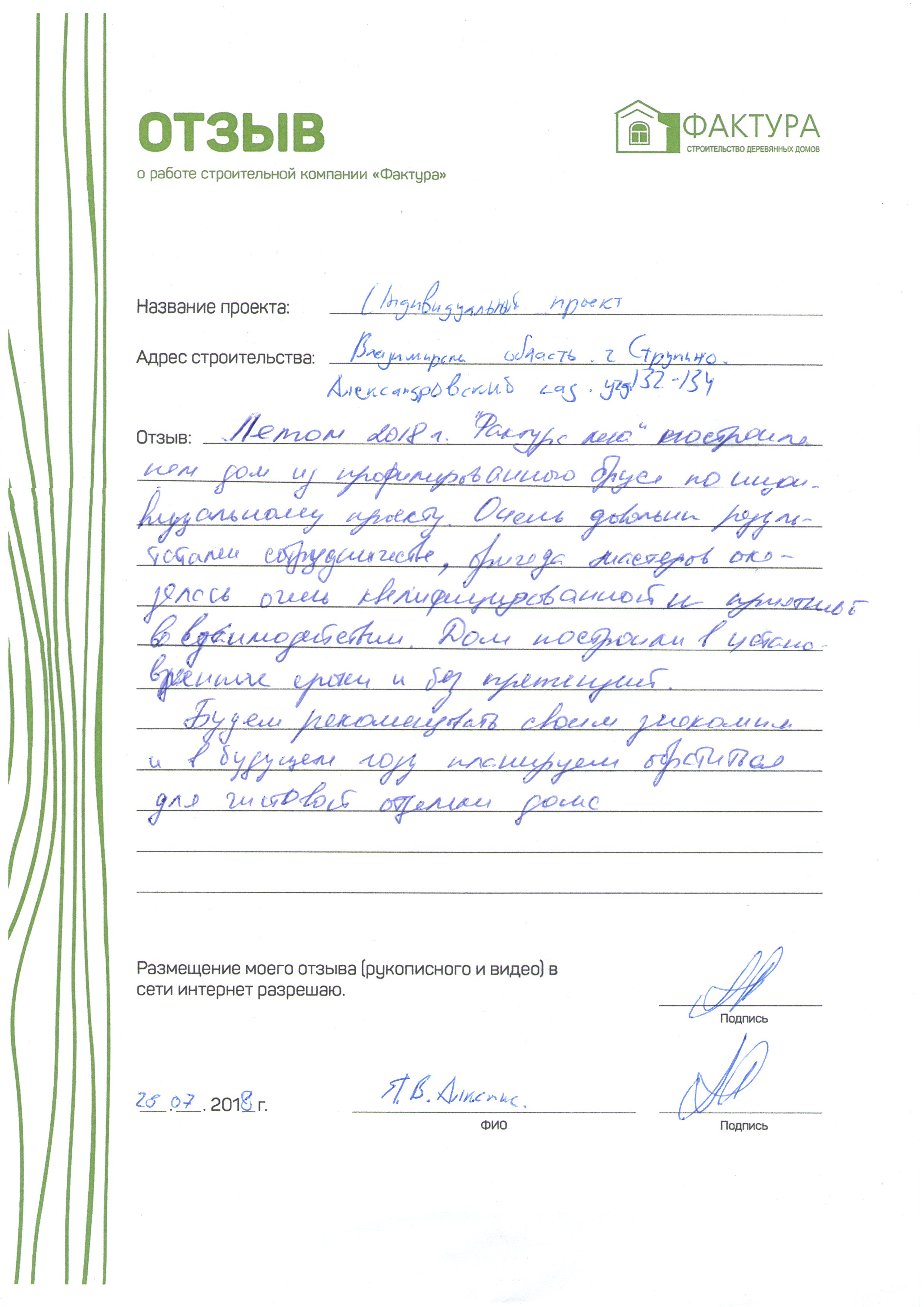 Благодарим сотрудников компании "Фактура" за качественную оперативную работу. Спасибо за красивый дом.