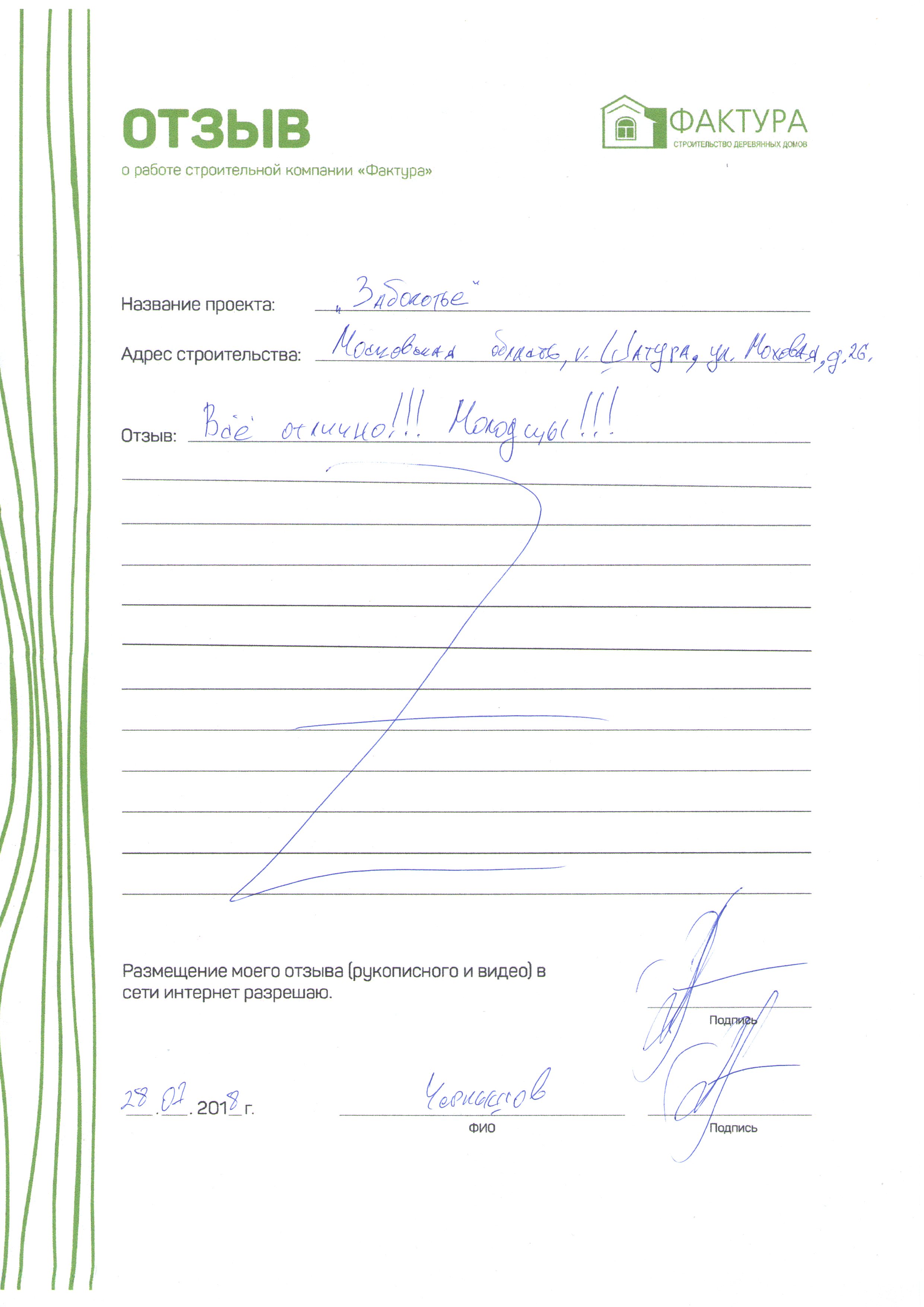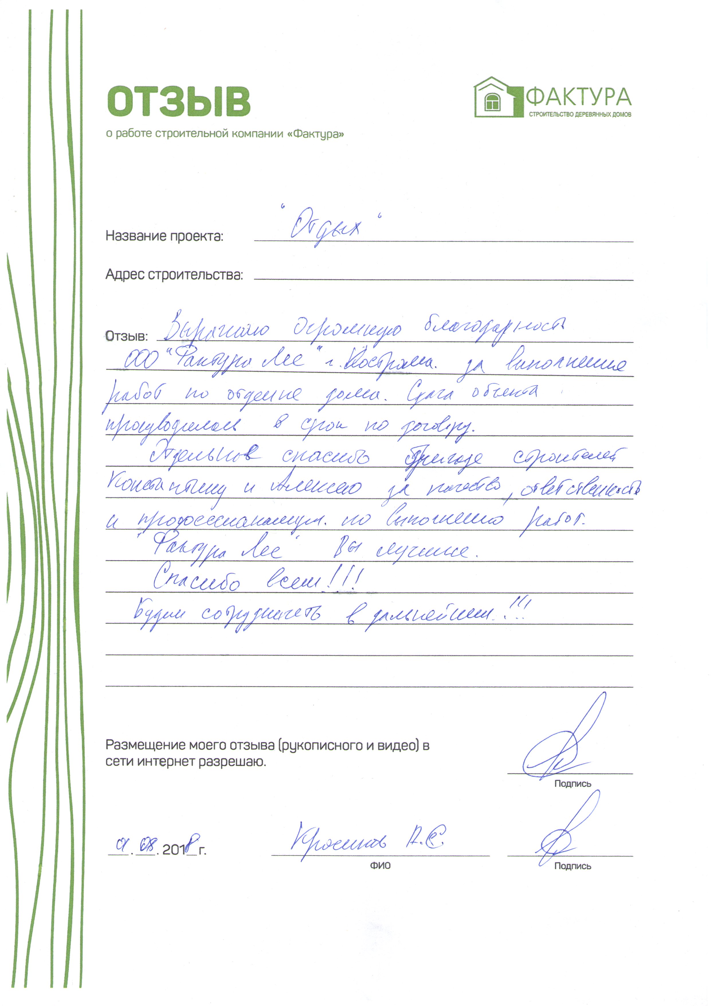 Выражаю огромную благодарность ООО "Фактура Лес" г. Кострома за выполнение работ по отделке дома. Вы лучшие. Спасибо всем! Будем сотрудничать в дальнейшем!