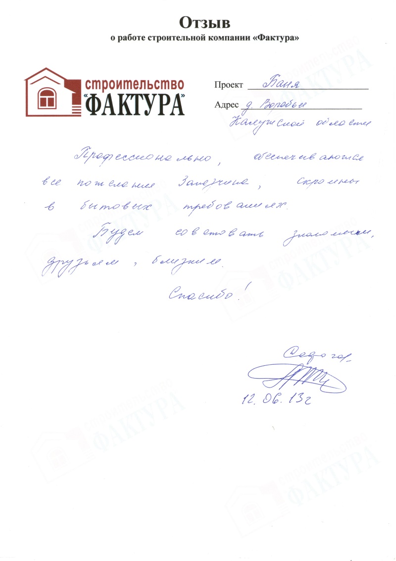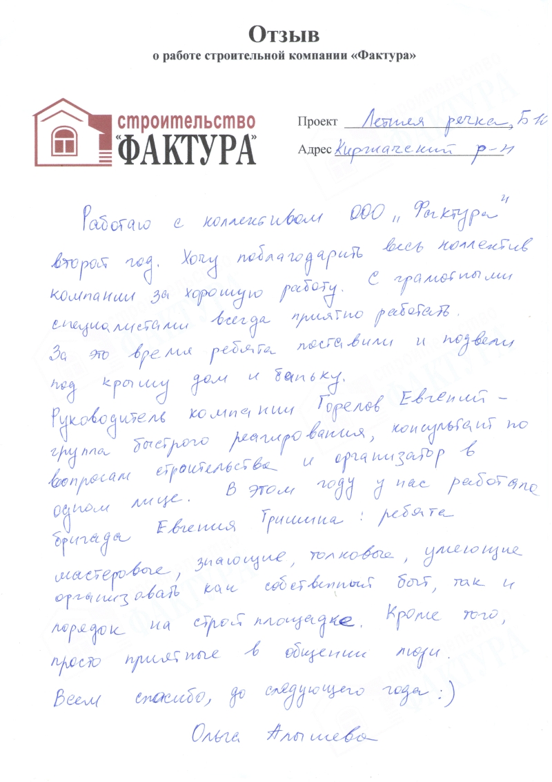 Работаю с коллективом ООО «Фактура» второй год. Хочу поблагодарить весь коллектив компании за хорошую работу. С грамотными специалистами всегда приятно работать.