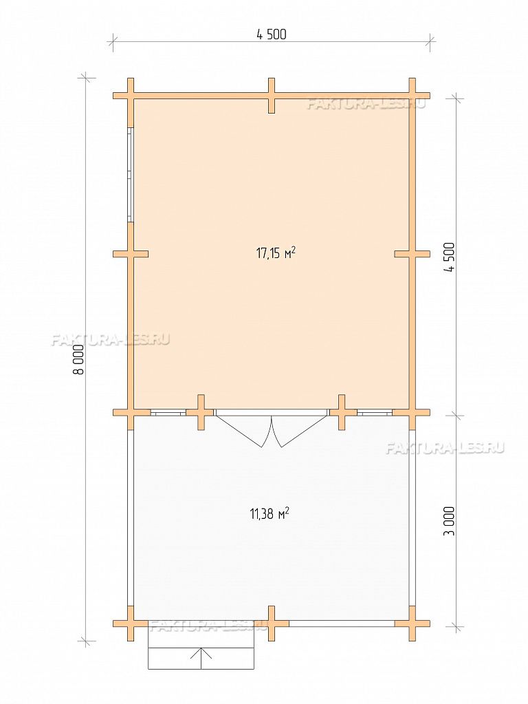 Обращаем Ваше внимание, что в данную комплектацию не входят отделочные работы и материалы, работы по устройству коммуникаций, окна, двери, лестница, каркасные перегородки (изображены на планах белым цветом). Все эти работы производятся после усадки капитальных стен, через 8-12 месяцев после монтажа сруба.