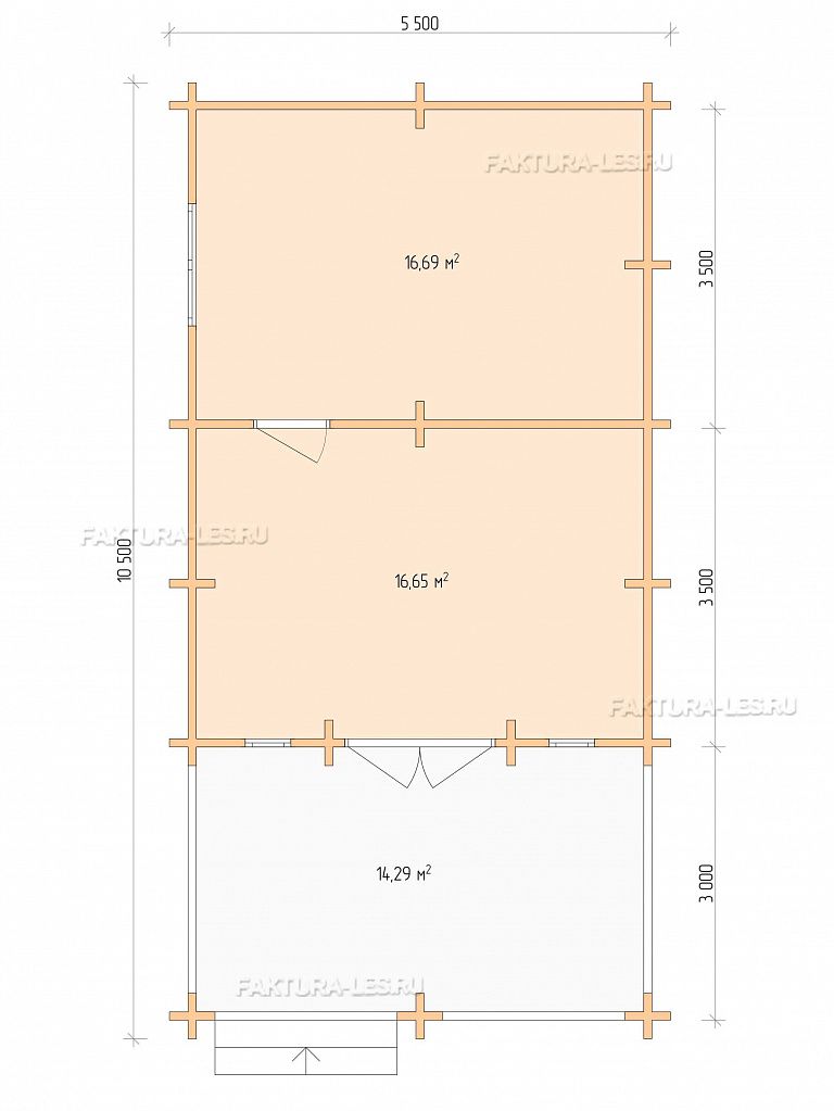 Обращаем Ваше внимание, что в данную комплектацию не входят отделочные работы и материалы, работы по устройству коммуникаций, окна, двери, лестница, каркасные перегородки (изображены на планах белым цветом). Все эти работы производятся после усадки капитальных стен, через 8-12 месяцев после монтажа сруба.