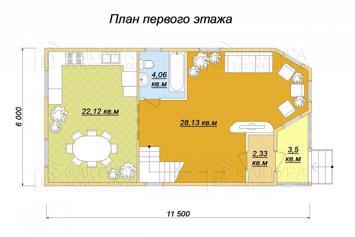 Проект дома из бруса «Кортюг» 6х11.5 м, площадью 115 м2