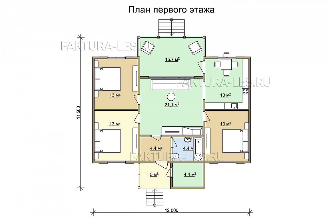 Обращаем Ваше внимание, что в данную комплектацию не входят отделочные работы и материалы, работы по устройству коммуникаций, окна, двери, лестница, каркасные перегородки (изображены на планах белым цветом). Все эти работы производятся после усадки капитальных стен, через 8-12 месяцев после монтажа сруба.