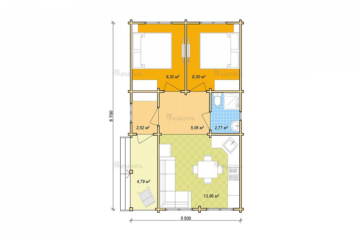 Проект дома из бруса «Боден» 5.8х9.0 м площадью 47 м2