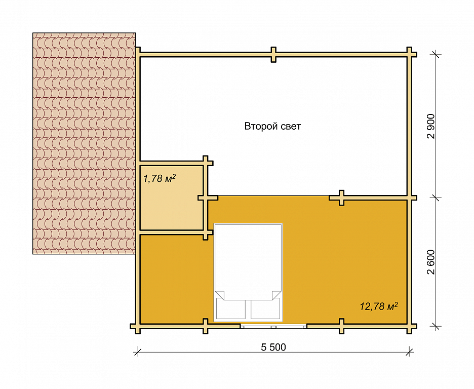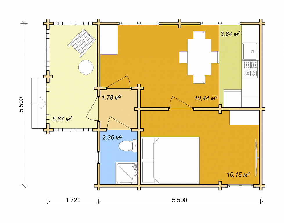 Проект дома из бруса «Карлстад» 5.8х5.8 м площадью 48 м2