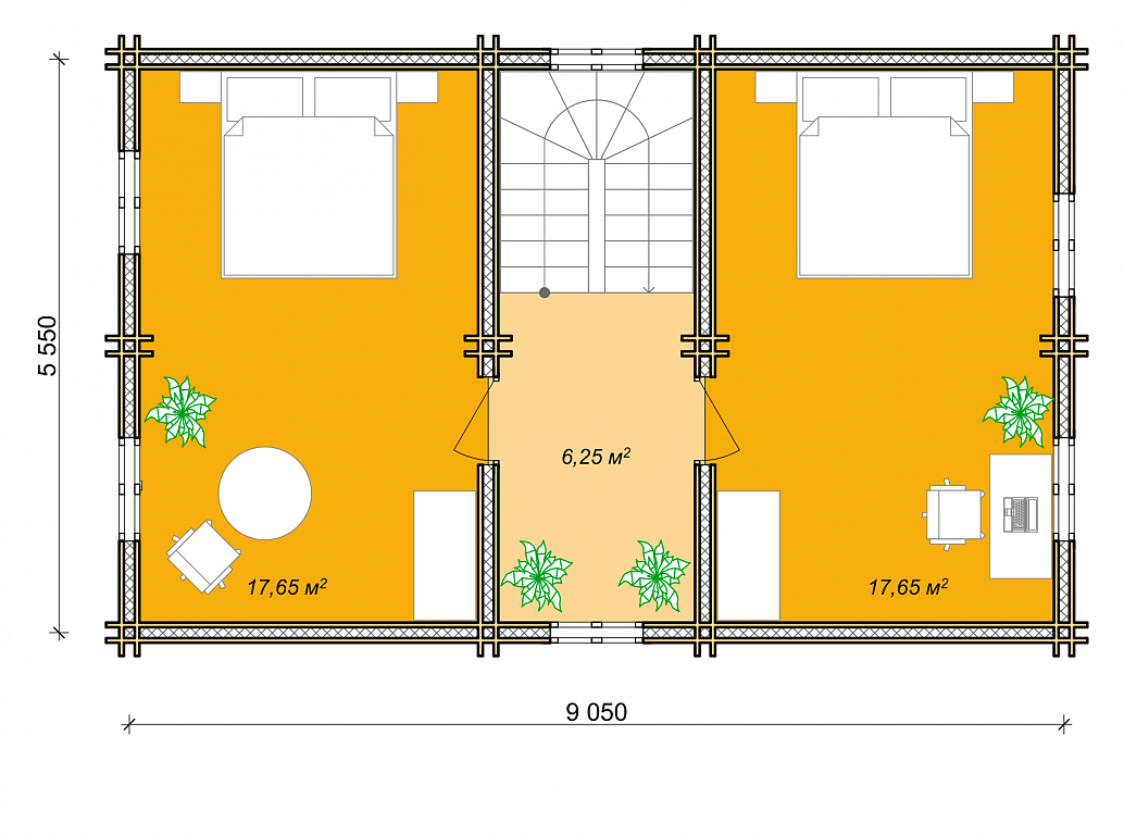 • Балки перекрытия из доски камерной сушки 45 × 195 мм. с шагом 600 мм.