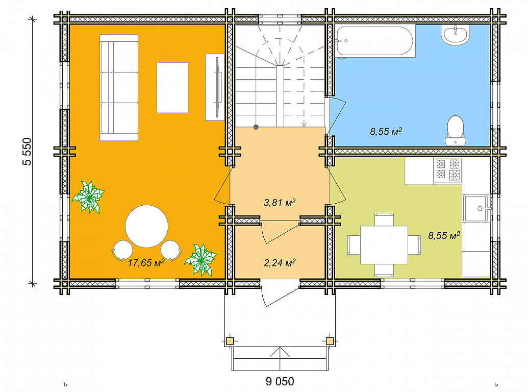 • Черновой пол из доски камерной сушки 22×140 мм.