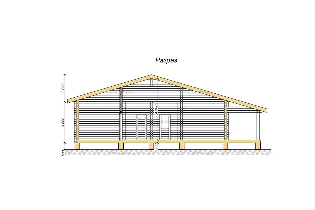 • Ростверк (ж/б лента) 350 × 500 мм. Цоколь 500 мм.