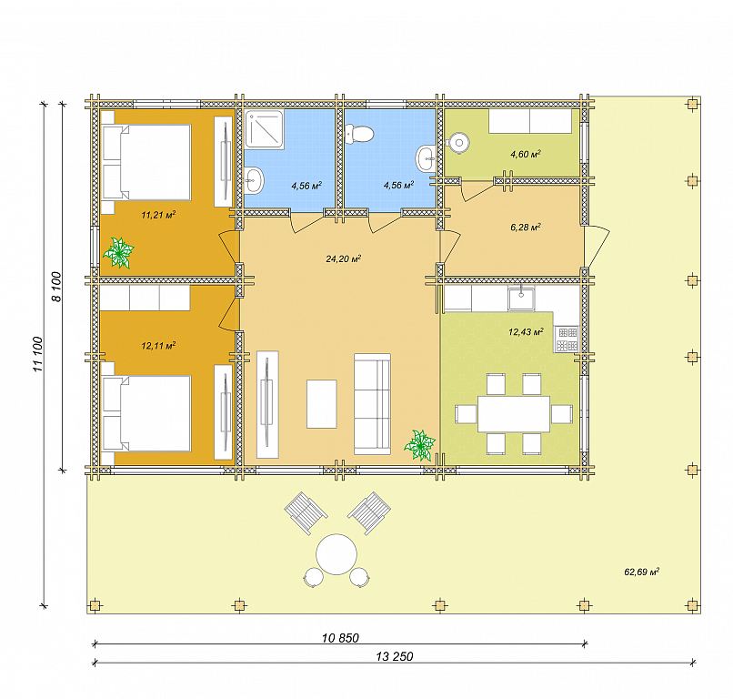 13.25 × 11 м